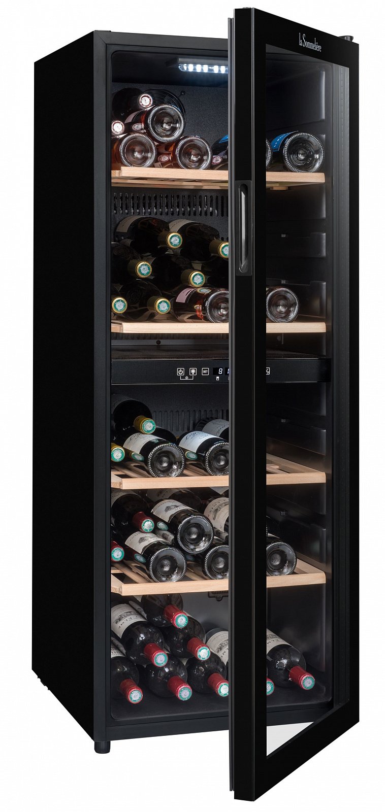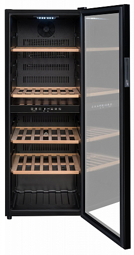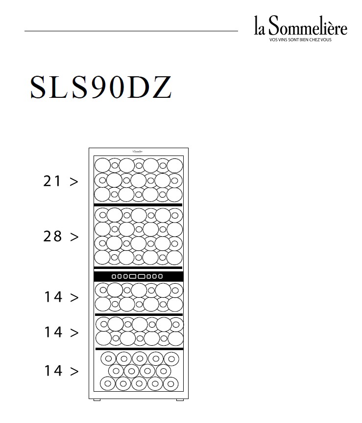 Современный SLS90DZ защищает ваши вина благодаря дверце из закаленного стекла, анти-УФ-обработке и украшает ваши бутылки внутренним светодиодным освещением. Внешний вид All Black и полностью стеклянная дверь делают его настоящим декоративным объектом.