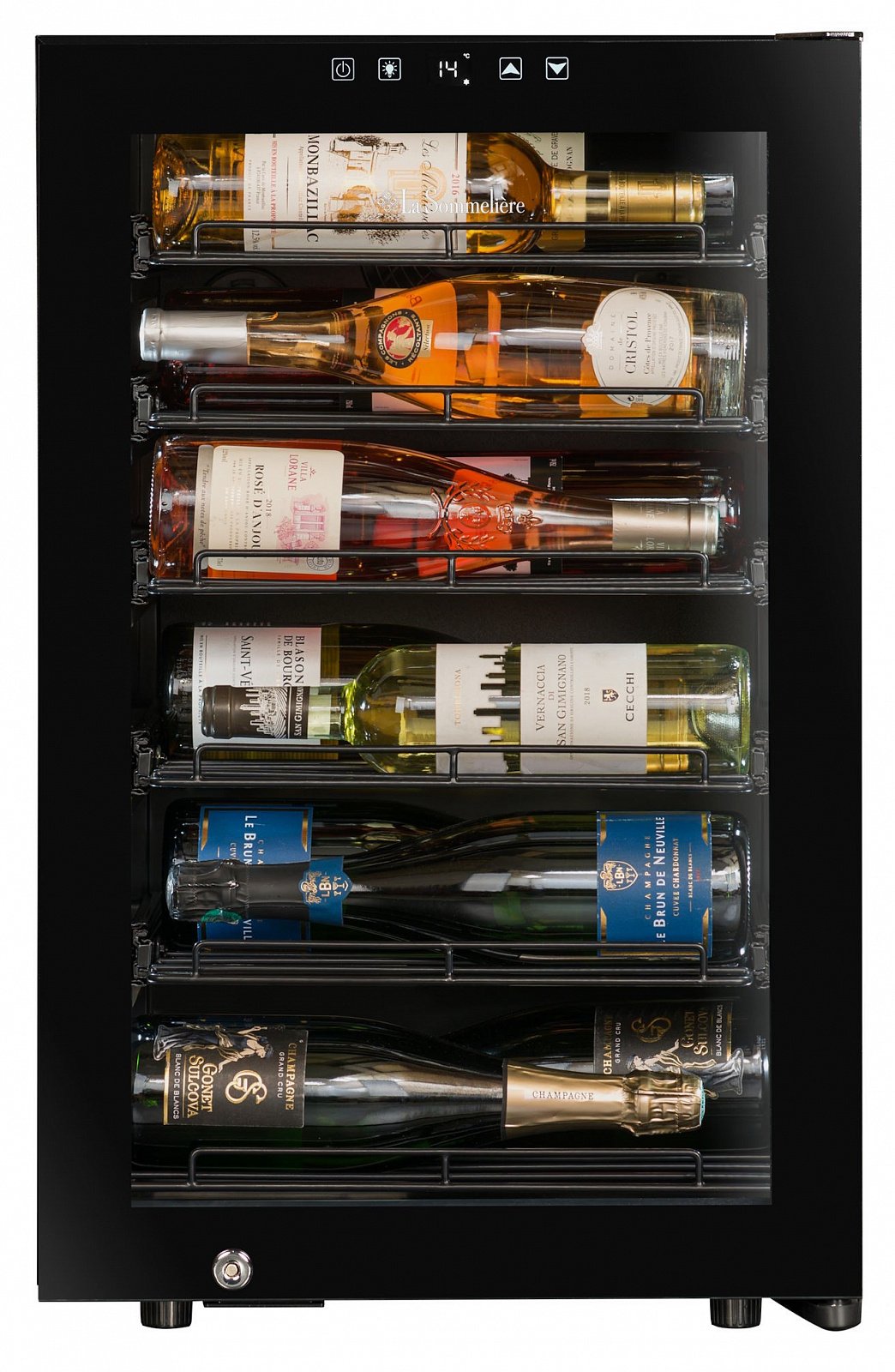 Винный шкаф La Sommeliere COLLECTION позволяет хранить до 22 бутылок (типа Бордо). Стеклянная дверца шкафа имеет АУФ-тонировку, поэтому хорошо защищает вина. 5 выдвижных полок и 1 фиксированная полка, позволяют расположить бутылки параллельно дверце, что способствует отличному виду на вашу коллекцию.