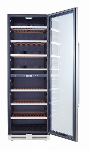 Храните свои вина на 7 деревянных полках с передней панелью из нержавеющей стали; эргономичные и скользя