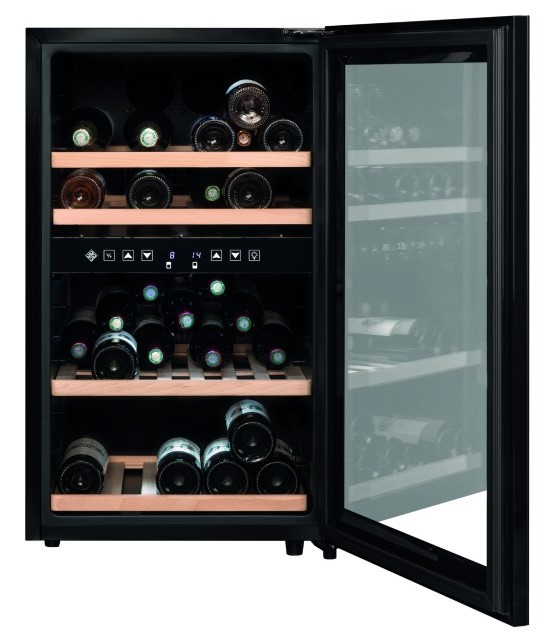 В двух независимых температурных отсеках можно хранить различные сорта вин. Шкаф оснащён 4-мя фиксированными полками из бука.