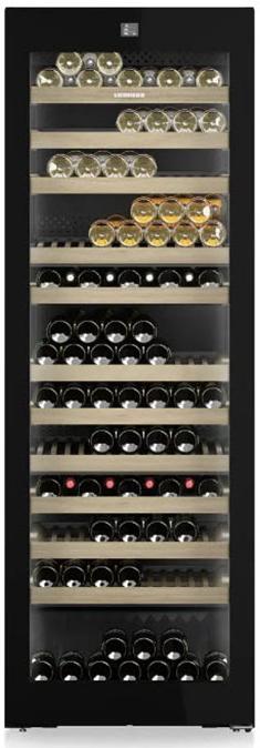 Винный шкаф Liebherr WPGbI 7473 Vinidor Selection — солидный прибор для тех, кто ценит аккуратное хранение и презентацию коллекции. Его строгий чёрный корпус с матовой стальной отделкой выгодно вписывается в современный интерьер. Большое остекление в тонкой рамке защищено от УФ-излучения, поэтому бутылки остаются в безопасности и не теряют аромата под воздействием света. Скрытая ручка и минималистичный профиль создают эффект монолитной мебели, а чёрная задняя панель придаёт глубину внутреннему пространству.