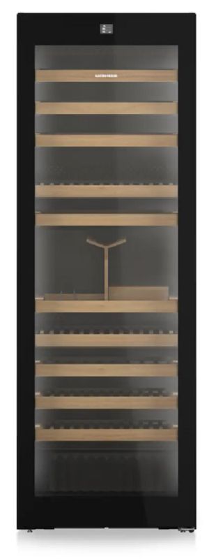 Внутреннее пространство рассчитано на 149 бутылок по 0,75 л и общий объем 562 литра. Один отсек с тремя температурными зонами обеспечивает гибкое хранение разных сортов одновременно. Деревянные полки создают аккуратную презентацию, защищают этикетки и глушат вибрации, а восемь выдвижных на телескопических направляющих облегчают доступ к глубоко стоящим бутылкам. Система EasyFill и демонстрационная полка упрощают укладку коллекции, а доска для сомелье полезна при сервировке и дегустациях.