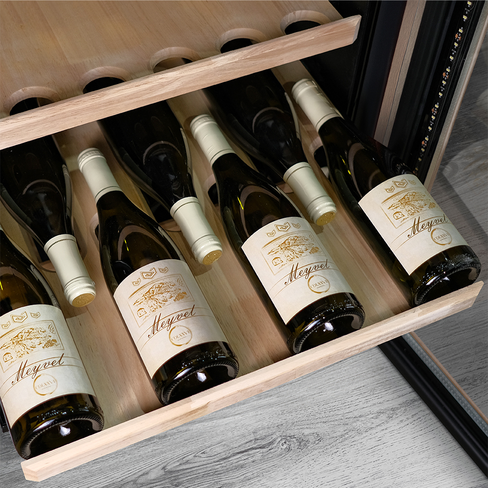 Дополнительное преимущество – демонстрационные полки, которые предоставляют возможность эффектно отобразить вашу коллекцию. Они помогут выделить лучшие вина и внесут изюминку ваш интерьер.