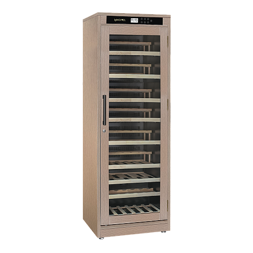 Аппарат оснащен подсветкой, которая помогает выделить каждую бутылку и создать эффектный акцент в интерьере. Необычный цвет корпуса («Холодный клен») придает шкафу изысканности и элегантности, преображая любой интерьер помещения.