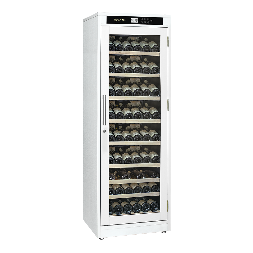 Винный шкаф MEYVEL MV102-WW1-M (White Snow) – это идеальное решение для любителей и коллекционеров вина. Он обладает большим объемом, позволяющим вместить до 102 бутылок, что делает его идеальным для содержания и демонстрации энотеки.