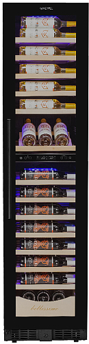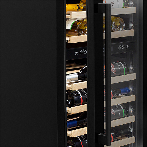 Винный шкаф MEYVEL MV106-KBT2 (Slim) используется для демонстрации, хранения и создания оптимальных условий для сохранения всех вкусовых свойств вина в бутылках на предприятиях общественного питания и торговли, в барах и ресторанах, в специализированных магазинах, частных домах и квартирах. Внутри шкафа поддерживается влажность в диапазоне 60-80%, как в настоящем винном погребе. Благодаря встроенной вентиляции, скрытым петлям и отсутствию выступающих частей, эта модель может быть не только отдельностоящей, но и устанавливаться в нишу с минимальными зазорами. Возможность перенавешивания двери, позволяет установить два винных шкафа рядом и организовать систему Side-by-Side.