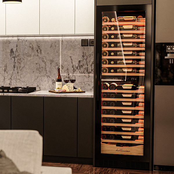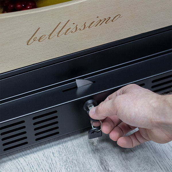Винный холодильник оснащён надёжным и экономичным компрессором. Ручка, вентиляционная решётка и замок выполнены в цвете корпуса.