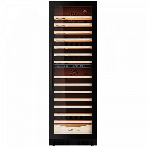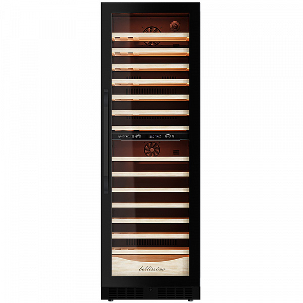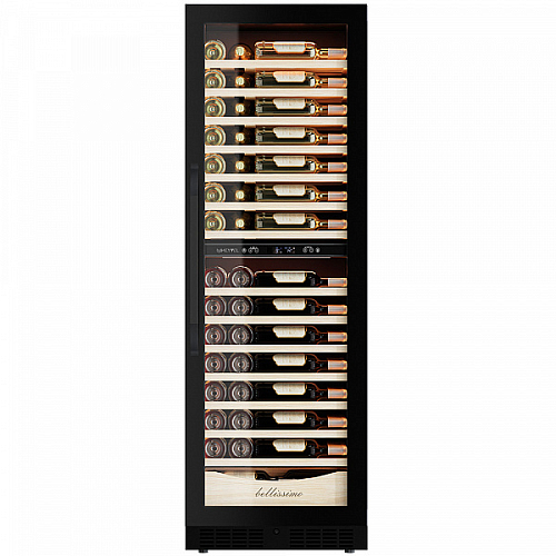 Внутреннее пространство винного шкафа разделено на две температурные зоны. Вы сможете настроить их так, что бы хранить все виды вина при идеальной температуре или установить разные значения, что бы напитки всегда были готовы к подаче. Так же в каждой зоне есть полка с увеличенным пространством. На таких полках Вы сможете разместить не только стандартные бутылки Бордо, но и Магнум. А если нужно разместить что-то побольше - то в этом случае можно вынуть одну или несколько полок. Внизу есть выдвижной ящик - в нем Вы можете хранить вино в бутылках или винные атрибуты (штопор, бокалы, аэраторы, декантеры, каплеуловители, термометры и т.д.) Если вынуть ящик, то можно разместить в демонстрационном положении до 6 бутылок вина.
