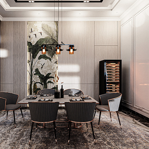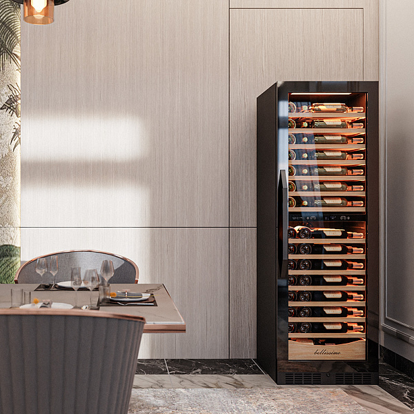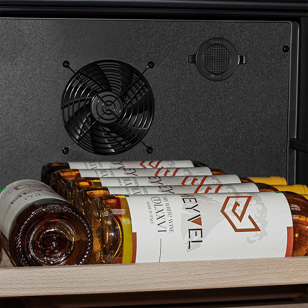 Несомненно, Вас порадует наличие панорамного светодиодного освещения (подсвечивает каждую полку), которое имеет три цвета - белый, янтарный и синий. Оно не выделяет тепло и следовательно - не нагревает бутылки с вином. Так что Вы сможете эффектно демонстрировать Вашу винную коллекцию.