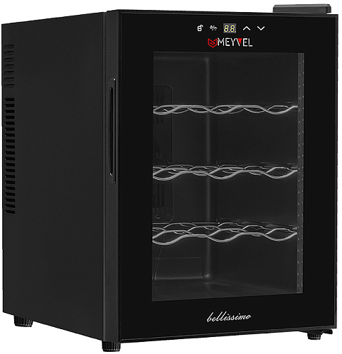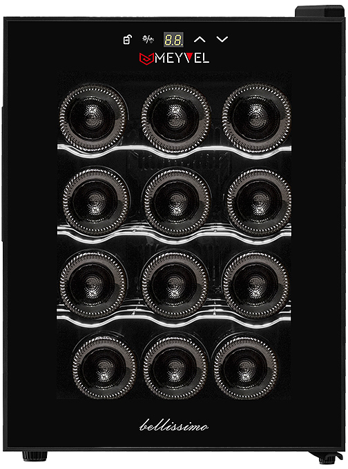Винный шкаф MEYVEL MV12-TB1 предназначен для демонстрации, хранения и создания оптимальных условий для сохранения всех вкусовых свойств вина в бутылках на предприятиях общественного питания, торговли, в барах, ресторанах, специализированных магазинах, частных домах или квартирах. Модель оснащена сенсорной панелью управления, электронным термостатом и светодиодной подсветкой. Корпус выполнен из окрашенной в черный цвет стали, дверь - из пластика и двойного стекла с защитой от ультрафиолетовых лучей, полки - из хромированного металла.