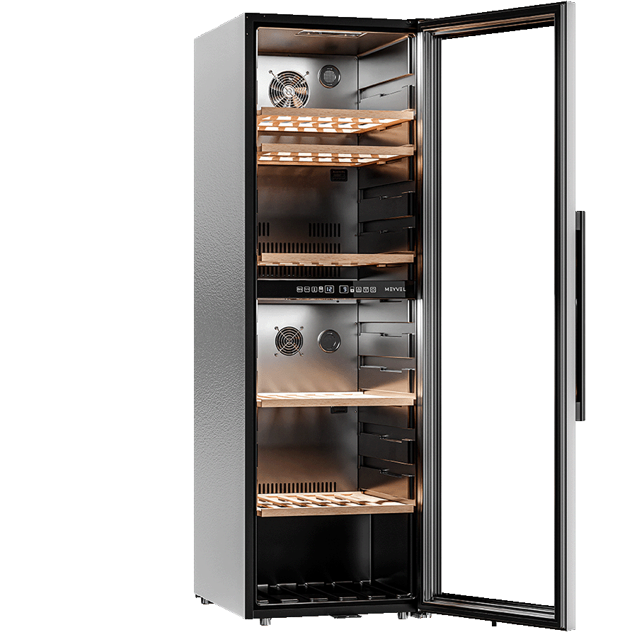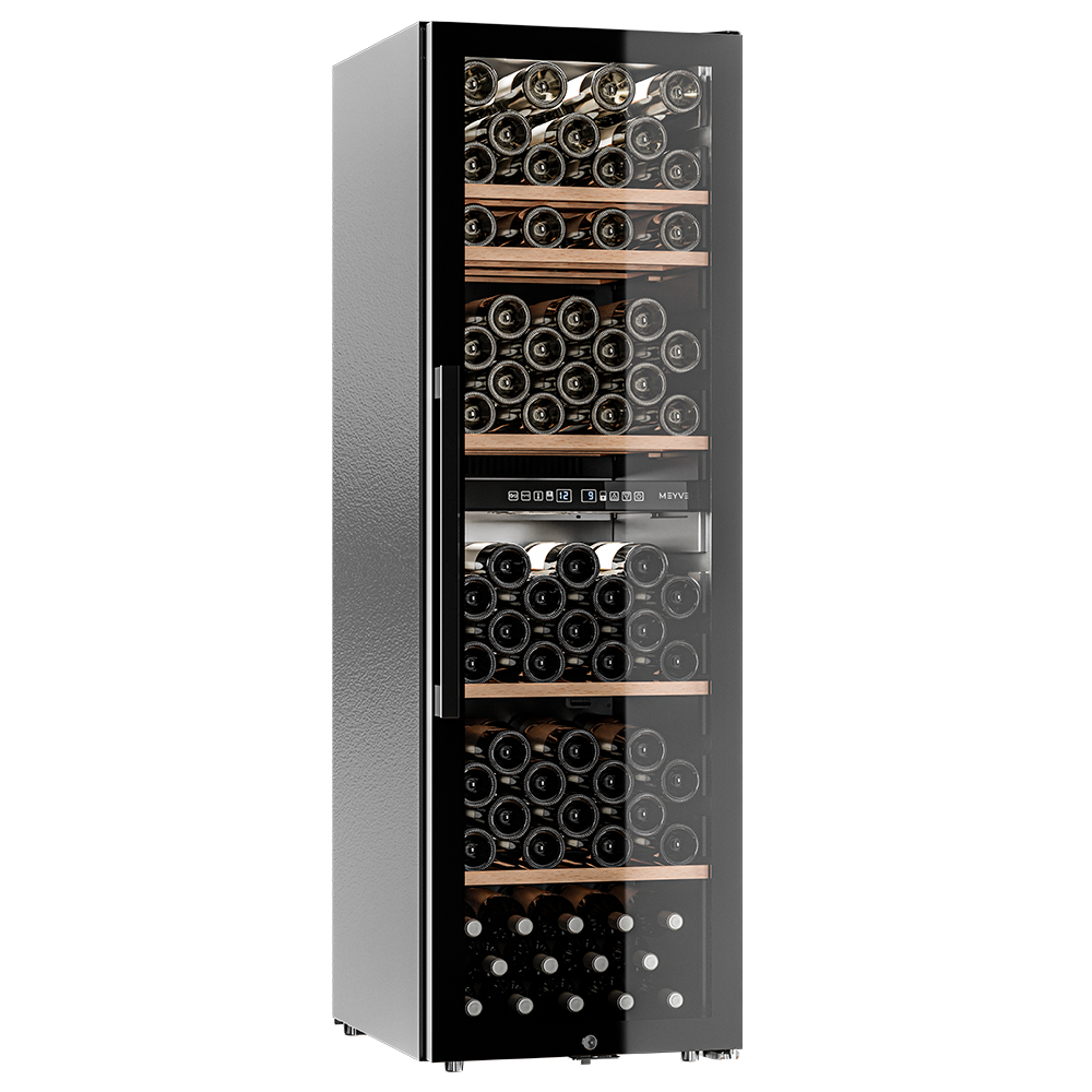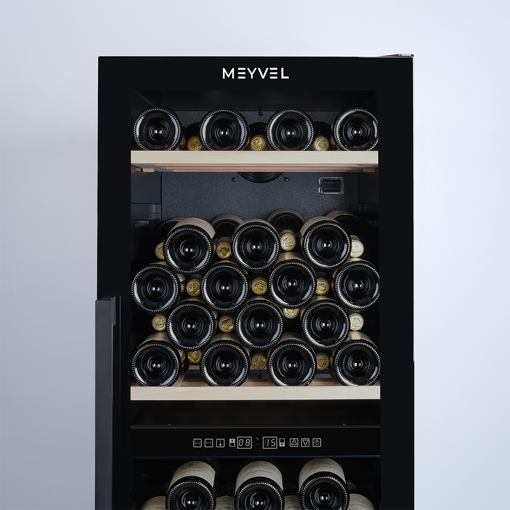 Meyvel MV126-KBF2 — отдельностоящее устройство, поэтому можно разместить его в любом удобном месте ресторана, отеля, бара или домашней винной комнаты без встраивания в мебель. Это удобно не только для создания стиля и атмосферы в интерьере, но и для предоставления легкого доступа к винам.