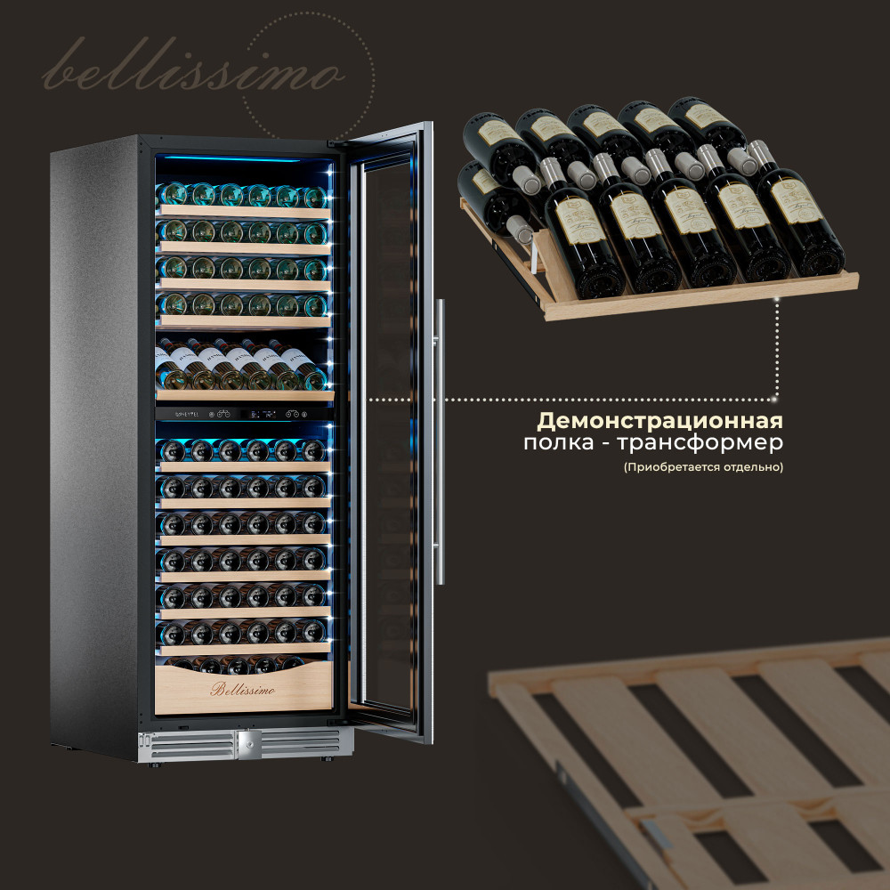 • Панорамное освещение для максимальной демонстрации винной коллекции;