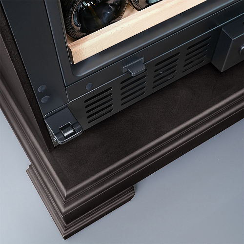 Винный холодильник оснащён надёжным и экономичным компрессором. Есть ручка, вентиляционная решётка и замок.