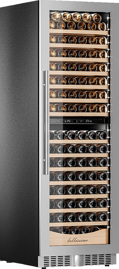 Винный шкаф MEYVEL MV163PRO-KST2 предназначен для демонстрации, хранения и создания оптимальных условий для сохранения всех вкусовых свойств вина в бутылках на предприятиях общественного питания, торговли, в барах, ресторанах, специализированных магазинах, частных домах или квартирах. Модель оснащена сенсорной панелью управления, 2 электронными термостатами и внутренней светодиодной подсветкой. Корпус выполнен из стали, дверь - из стальной рамы и тройного стекла с защитой от ультрафиолетовых лучей, полки - из массива бука.