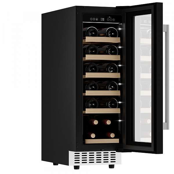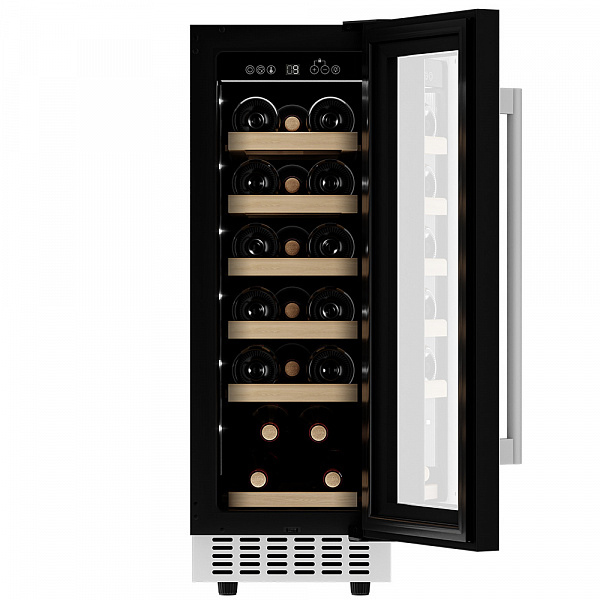 Винный холодильник оснащен дверью с защитой от ультрафиолетовых лучей и отлично подойдет для хранения и созревания различных сортов вин. Динамическая система охлаждения обеспечивает оптимальную температуру для вина и сохраняет необходимую влажность внутри камеры.