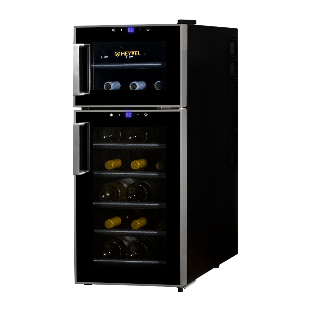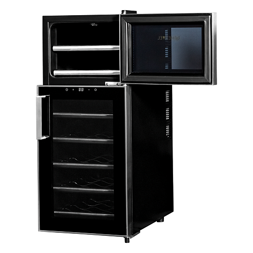 Модель оснащена электронным управлением и LED подсветкой, имеет 2 зоны охлаждения с универсальной технологией применения особого температурного режима внутри камер, тем самым позволяя сохранить все вкусовые и изысканные свойства вина.