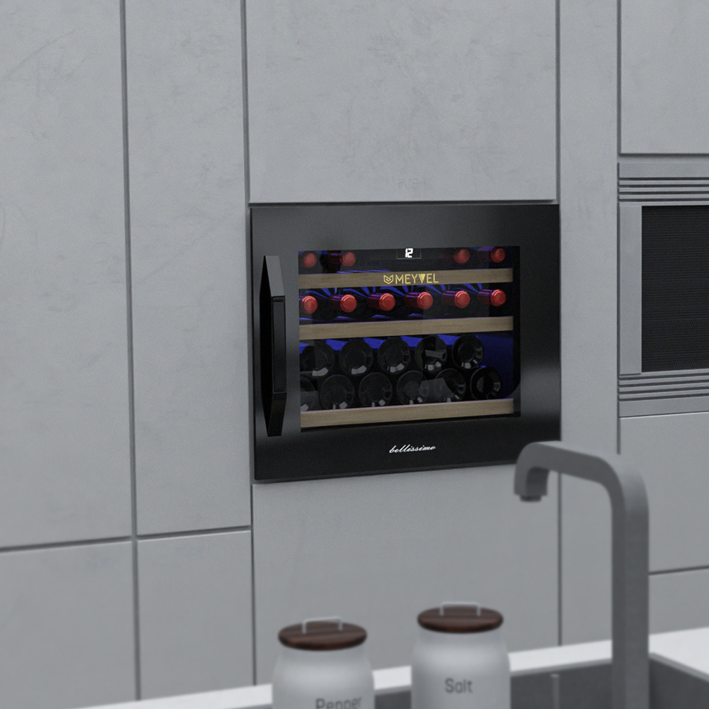 Винный шкаф MEYVEL MV22-KBB1 применяется для хранения и охлаждения вина в кафе и ресторанах. Дверь с защитой от ультрафиолетовых лучей.