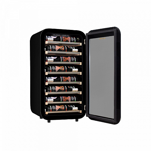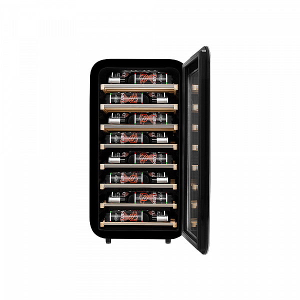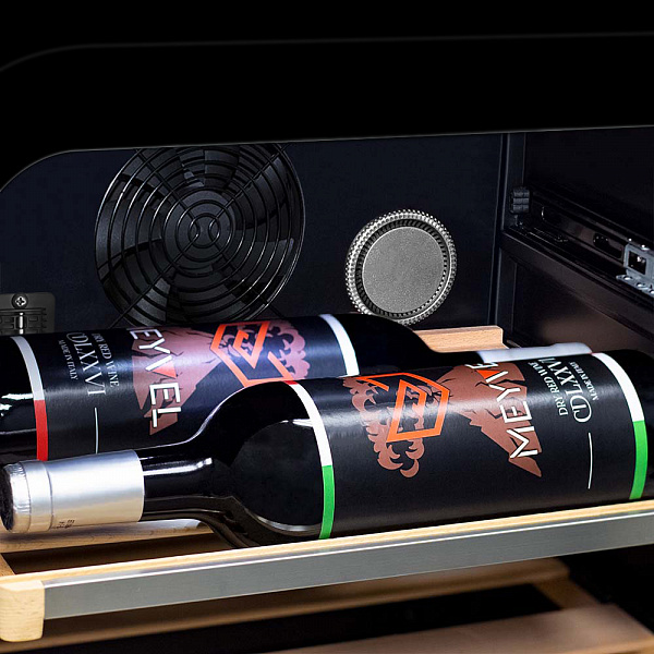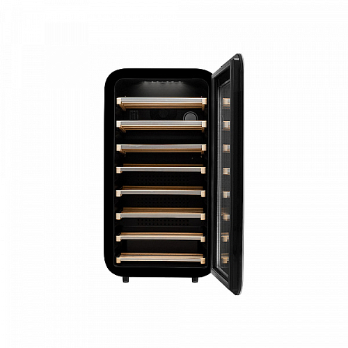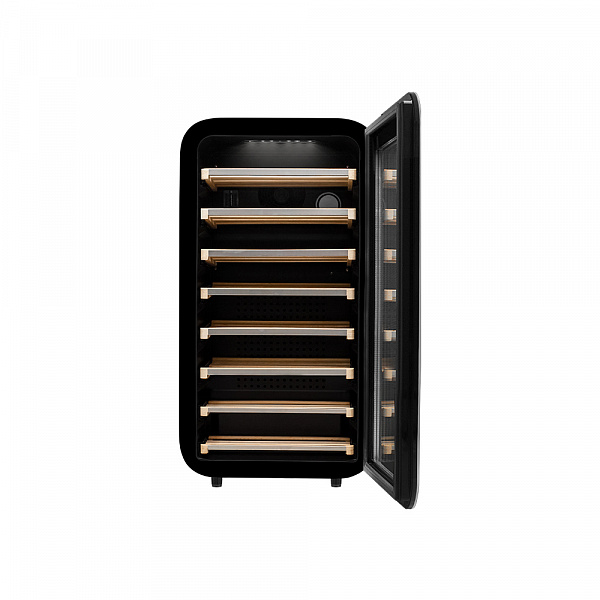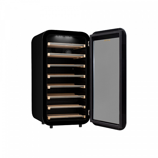 Винный холодильник оснащен дверью с тройной защитой от ультрафиолетовых лучей и отлично подойдет для хранения и созревания различных сортов вин. Динамическая система охлаждения обеспечивает оптимальную температуру для вина и сохраняет необходимую влажность внутри камеры.