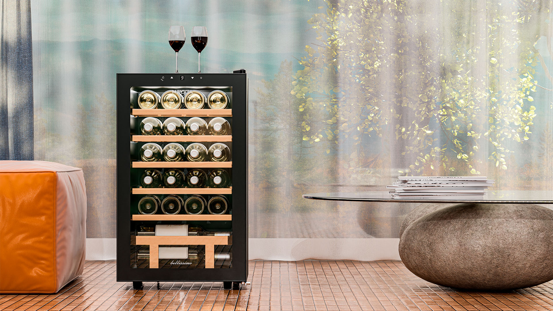 Это компрессорное устройство, создающее идеальные условия для хранения до 24 бутылок и предназначенное для установки как отдельный элемент мебели, создаст все условия, чтобы вино не утратило свои вкус и аромат.