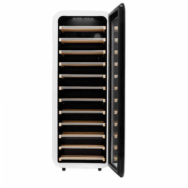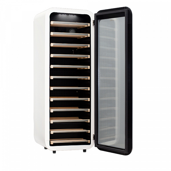 Винный холодильник оснащен дверью с тройной защитой от ультрафиолетовых лучей и отлично подойдет для хранения и созревания различных сортов вин. Динамическая система охлаждения обеспечивает оптимальную температуру для вина и сохраняет необходимую влажность внутри камеры.