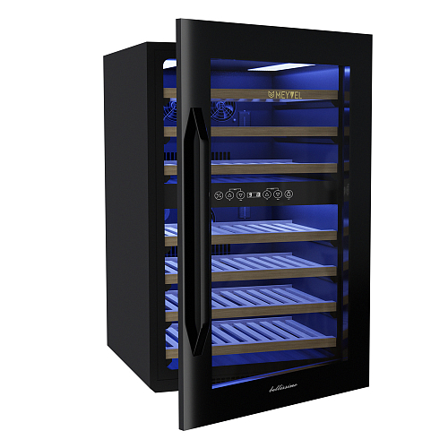 Винный шкаф MEYVEL MV42-KBB2 используется для хранения и охлаждения вина в кафе и ресторанах. Дверь с защитой от ультрафиолетовых лучей.