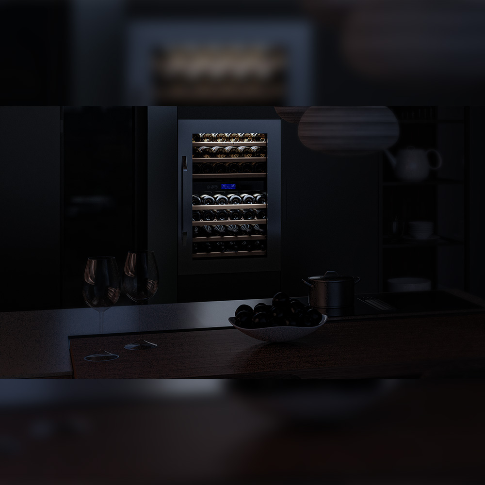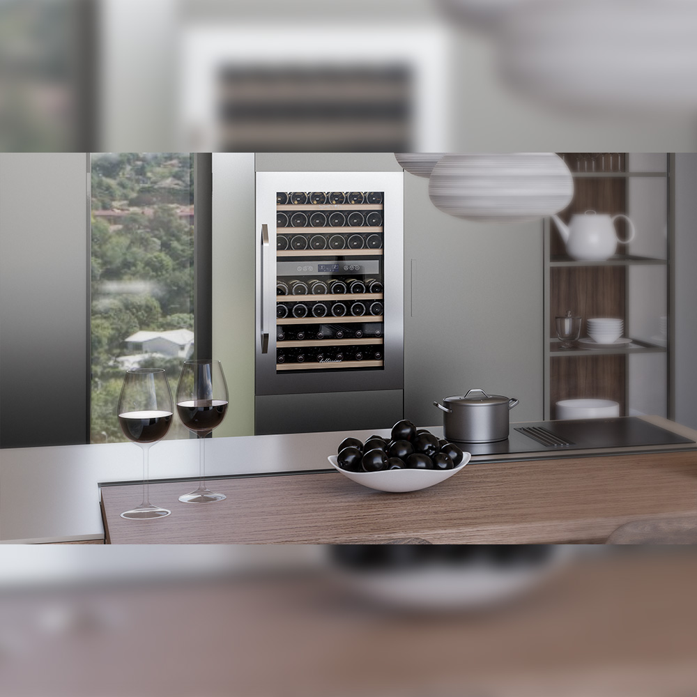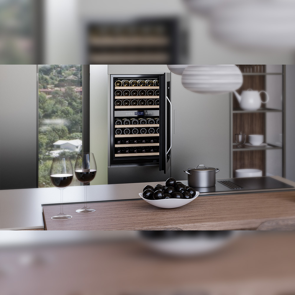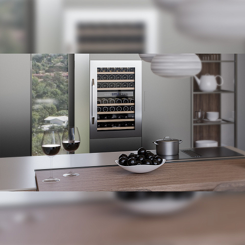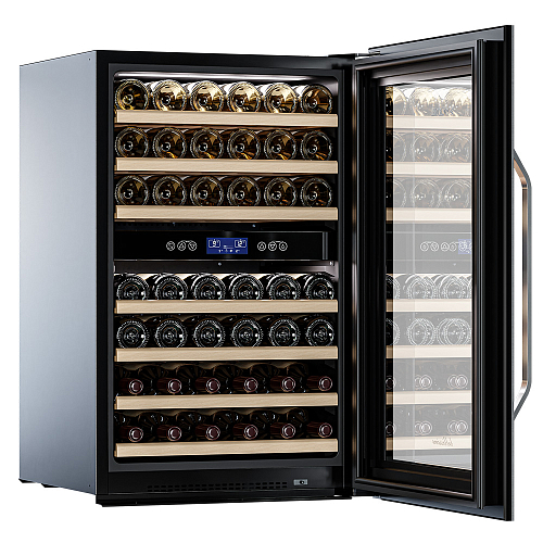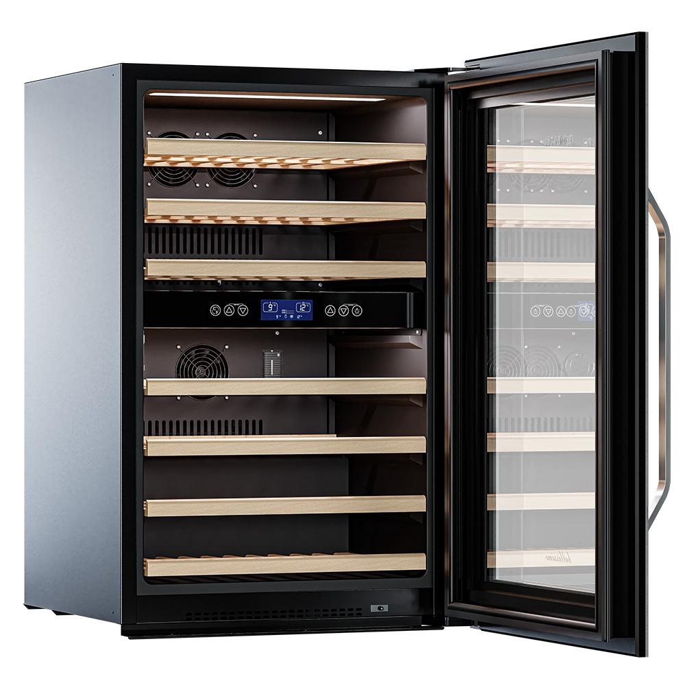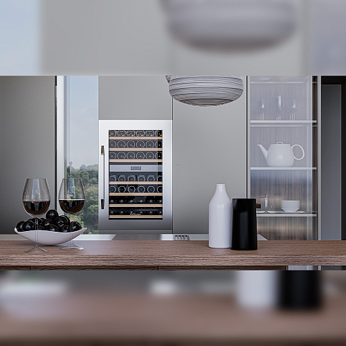 Винный холодильник оснащен дверью с защитой от ультрафиолетовых лучей и отлично подойдет для хранения и созревания различных сортов вин. Динамическая система охлаждения обеспечивает оптимальную температуру для вина и сохраняет необходимую влажность внутри камеры.