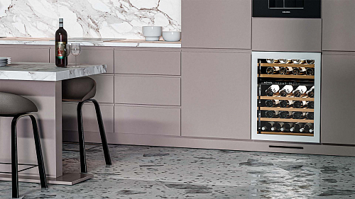 • необходимо установить винный шкаф по уровню и отрегулировать зазоры между дверью и мебельным фасадом, чтобы не повредить их.