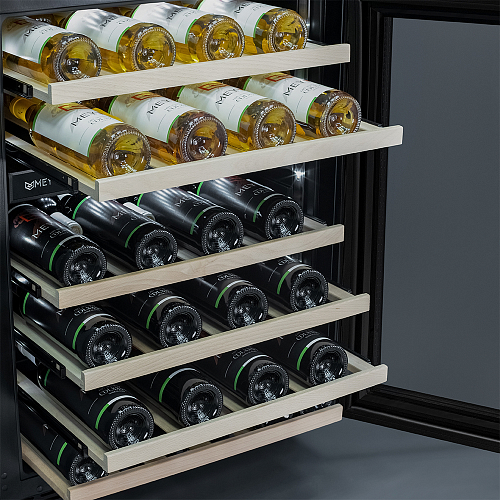 Компрессорный винный шкаф Meyvel MV46NH-KWT2 обладает большой вместимостью и способен разместить до 46 бутылок. Располагаются они на полках из массива бука. Внутреннее пространство шкафа разделено на 2 температурные зоны с возможностью настраивать каждую из них (верхняя зона имеет диапазон от +5℃ до +12℃, а нижняя - от +12℃ до +20℃). Холодильник поддерживает влажность в диапазоне 60-80%, как в настоящем винном погребе.