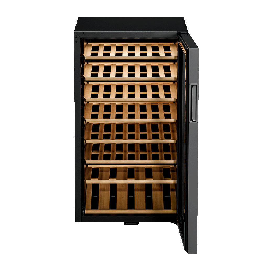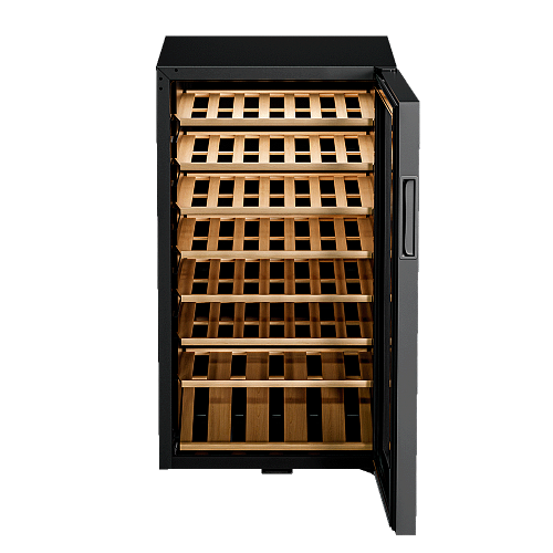 Двойное стекло с УФ-фильтром защищает вино от вредного воздействия ультрафиолетовых лучей, сохраняя его цвет и вкус. Выдвижные полки предоставляют легкий доступ к бутылкам, а демонстрационная полка помогает эффектно представить вашу коллекцию вин гостям.