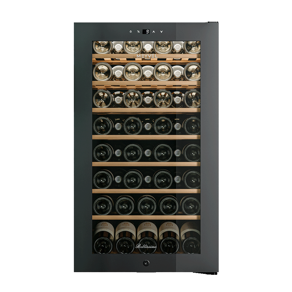 Винный шкаф MEYVEL MV52-KBF1 с эффективным прямым охлаждением, способный вместить до 52 бутылок стандартного типа «Бордо» объемом 0,75 литра. Без демонстрационной полки вместимость увеличивается с 52 до 56 бутылок. Он станет идеальным решением для хранения и выдержки вина в домашних условиях, а также для профессионального использования в барах, ресторанах и винотеках.