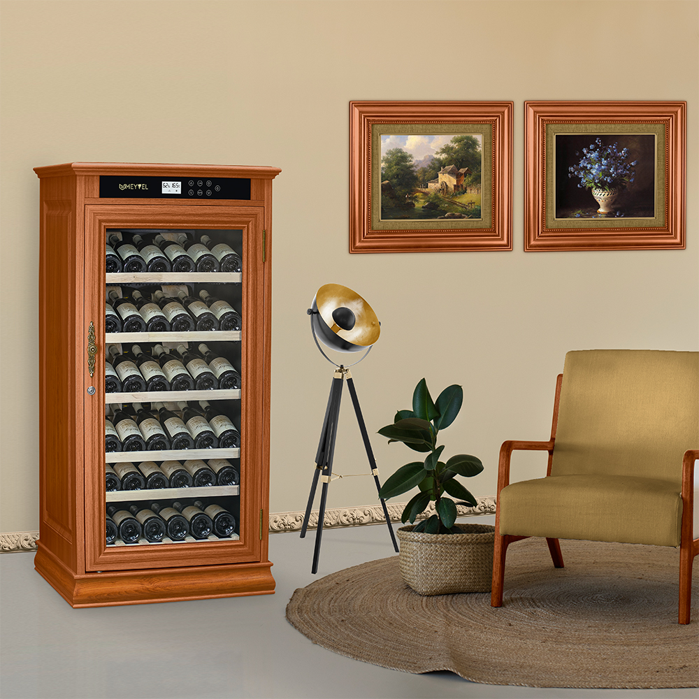 Винный шкаф MEYVEL MV69-WA1-C (Almond) – это идеальное решение для любителей и коллекционеров вина. Он обладает большим объемом, позволяющим вместить до 69 бутылок, что делает его идеальным для содержания и демонстрации энотеки.