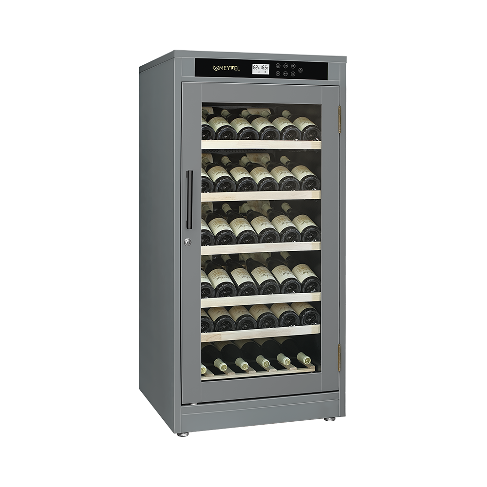 Винный шкаф MEYVEL MV69-WG1-M (Grey Quartz) – это идеальное решение для любителей и коллекционеров вина. Он обладает большим объемом, позволяющим вместить до 69 бутылок, что делает его идеальным для содержания и демонстрации энотеки.