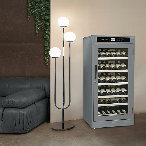 Влажность и температура поддерживается на заданном уровне автоматически, что делает использование устройства очень удобным. Температуру можно настроить от +5 до +22 градусов Цельсия, а влажность держится на уровне не более 80%, что является идеальными условиями для содержания и созревания вин.