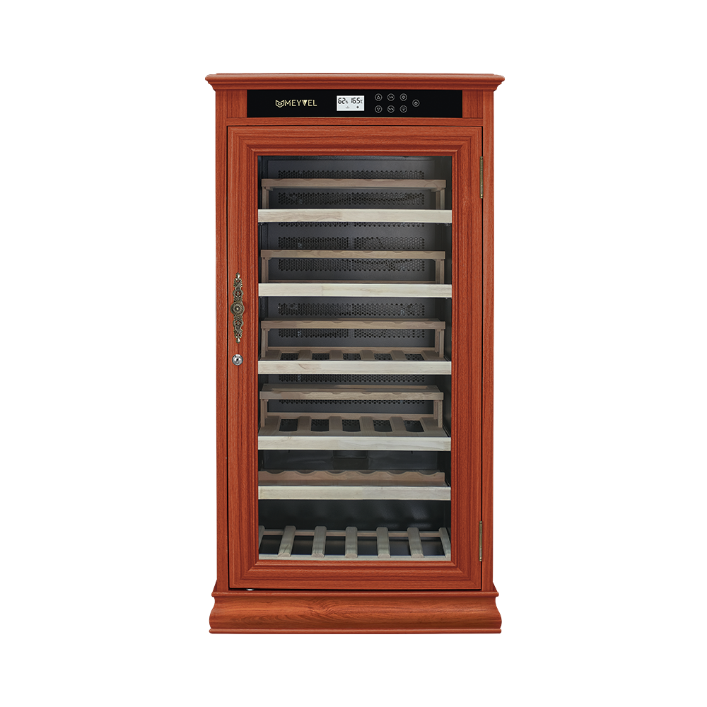 Винный шкаф MEYVEL MV69-WN1-C (Nut) – это идеальное решение для любителей и коллекционеров вина. Он обладает большим объемом, позволяющим вместить до 69 бутылок, что делает его идеальным для содержания и демонстрации энотеки.