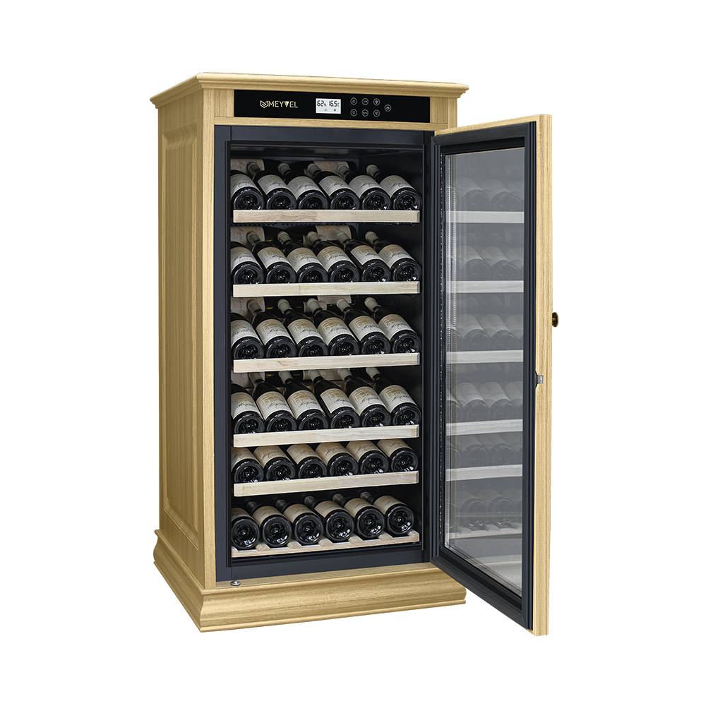 Винный шкаф MEYVEL MV69-WO1-C (Northern Oak) – это идеальное решение для любителей и коллекционеров вина. Он обладает большим объемом, позволяющим вместить до 69 бутылок, что делает его идеальным для содержания и демонстрации энотеки.