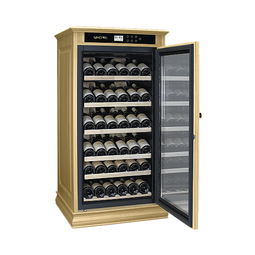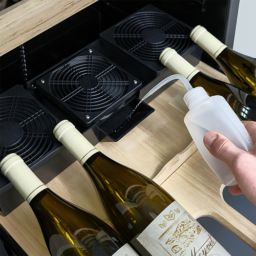 Влажность и температура поддерживается на заданном уровне автоматически, что делает использование устройства очень удобным. Температуру можно настроить от +5 до +22 градусов Цельсия, а влажность держится на уровне не более 80%, что является идеальными условиями для содержания и созревания вин.