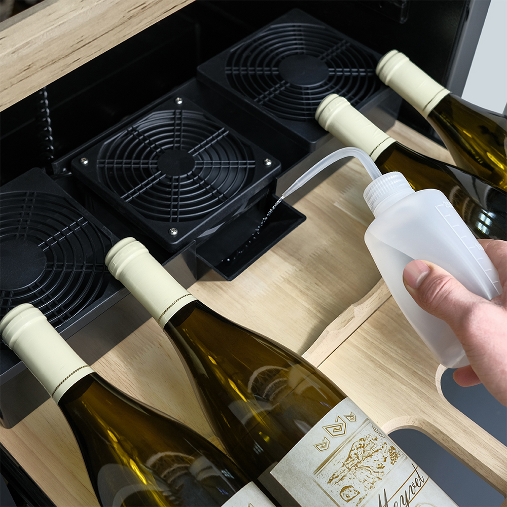 Влажность и температура поддерживается на заданном уровне автоматически, что делает использование устройства очень удобным. Температуру можно настроить от +5 до +22 градусов Цельсия, а влажность держится на уровне не более 80%, что является идеальными условиями для содержания и созревания вин.