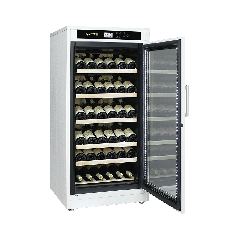 Винный шкаф MEYVEL MV69-WW1-M (White Snow) – это идеальное решение для любителей и коллекционеров вина. Он обладает большим объемом, позволяющим вместить до 69 бутылок, что делает его идеальным для содержания и демонстрации энотеки.