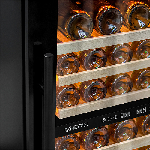 Винный шкаф Meyvel MV77PRO-KBT2 имеет привлекательный внешний вид, сочетающий в себе неподвластное времени очарование натуральных материалов с высокотехнологичными системами сохранения продуктов.