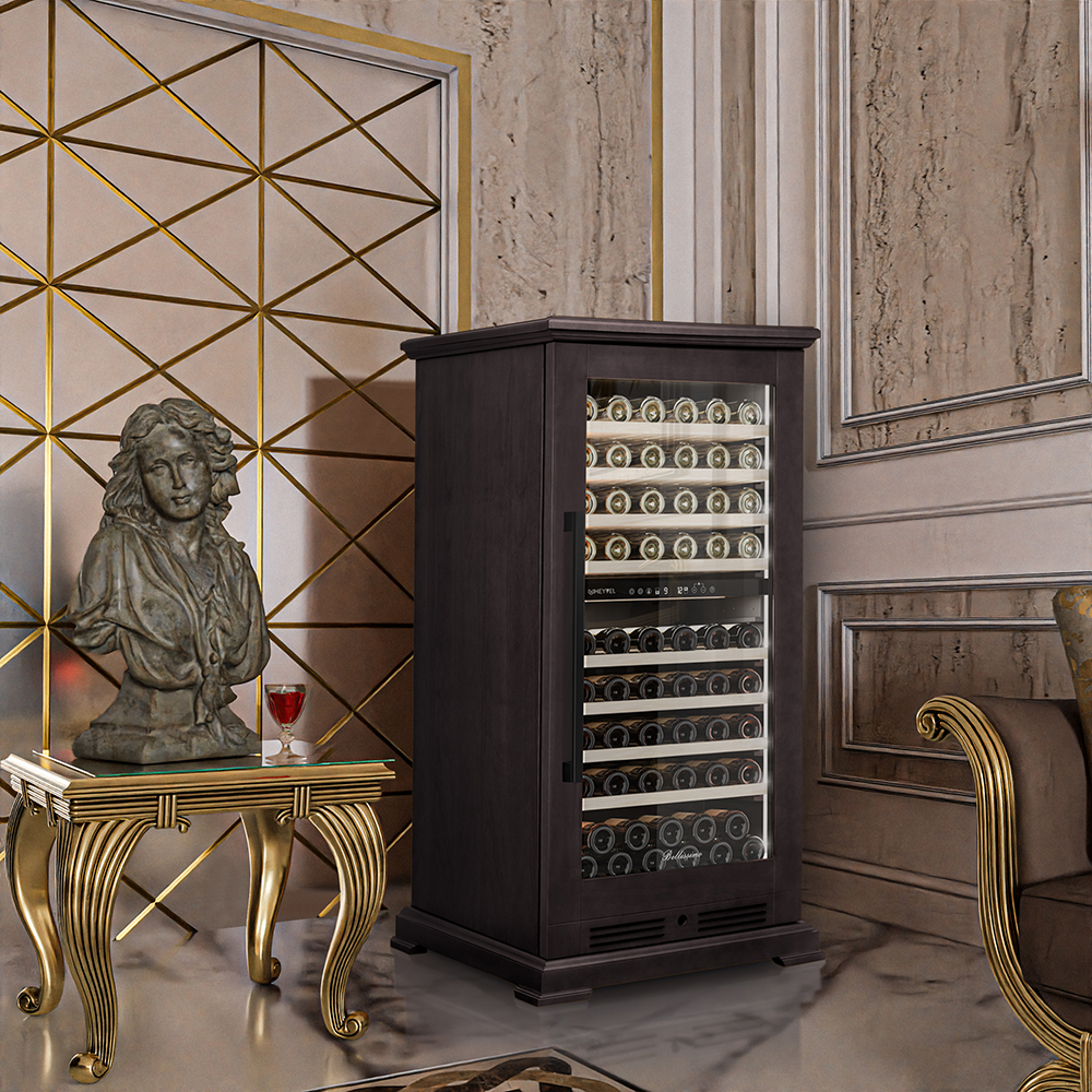 Винный шкаф MEYVEL MV99PRO-KBT2 (Тёмный шоколад) имеет привлекательный внешний вид, сочетающий в себе неподвластное времени очарование натуральных материалов с высокотехнологичными системами сохранения продуктов. Винный холодильник Meyvel MV99PRO-KBT2 оснащен дверью с защитой от ультрафиолетовых лучей и отлично подойдет для хранения и созревания различных сортов вин. Динамическая система охлаждения обеспечивает оптимальную температуру для вина и сохраняет необходимую влажность внутри камеры.