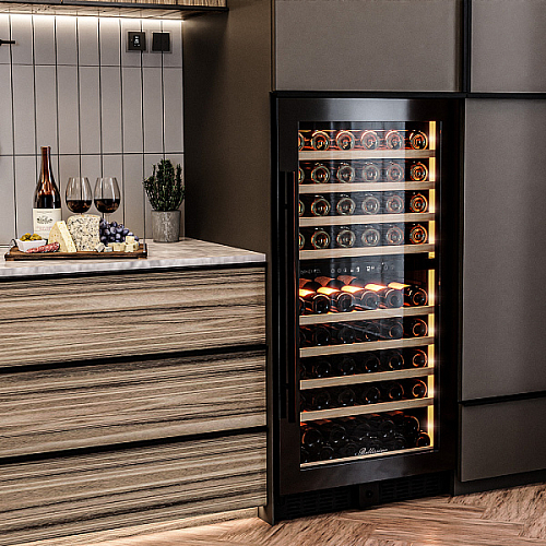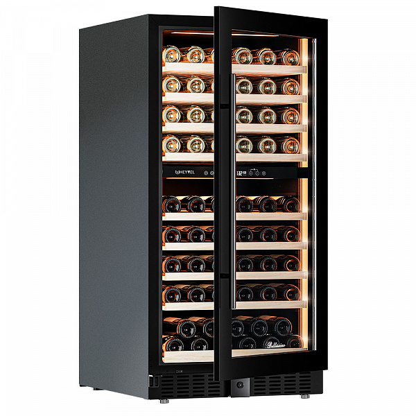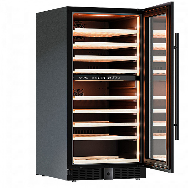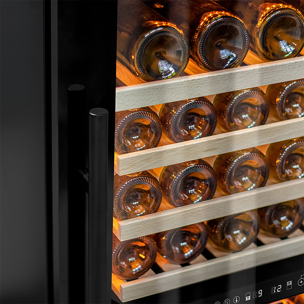 Винный холодильник оснащен дверью с защитой от ультрафиолетовых лучей и отлично подойдет для хранения и созревания различных сортов вин. Динамическая система охлаждения обеспечивает оптимальную температуру для вина и сохраняет необходимую влажность внутри камеры.