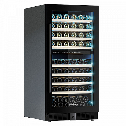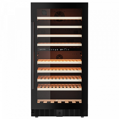 Компрессорный винный шкаф Meyvel MV99PRO-KBT2 обладает большой вместимостью и способен разместить до 99 бутылок. Располагаются они на полках из массива бука. Внутреннее пространство шкафа разделено на 2 температурные зоны с возможностью настройки в диапазоне от + 5°C до +20°C. Холодильник поддерживает влажность в диапазоне 60-80%, как в настоящем винном погребе.