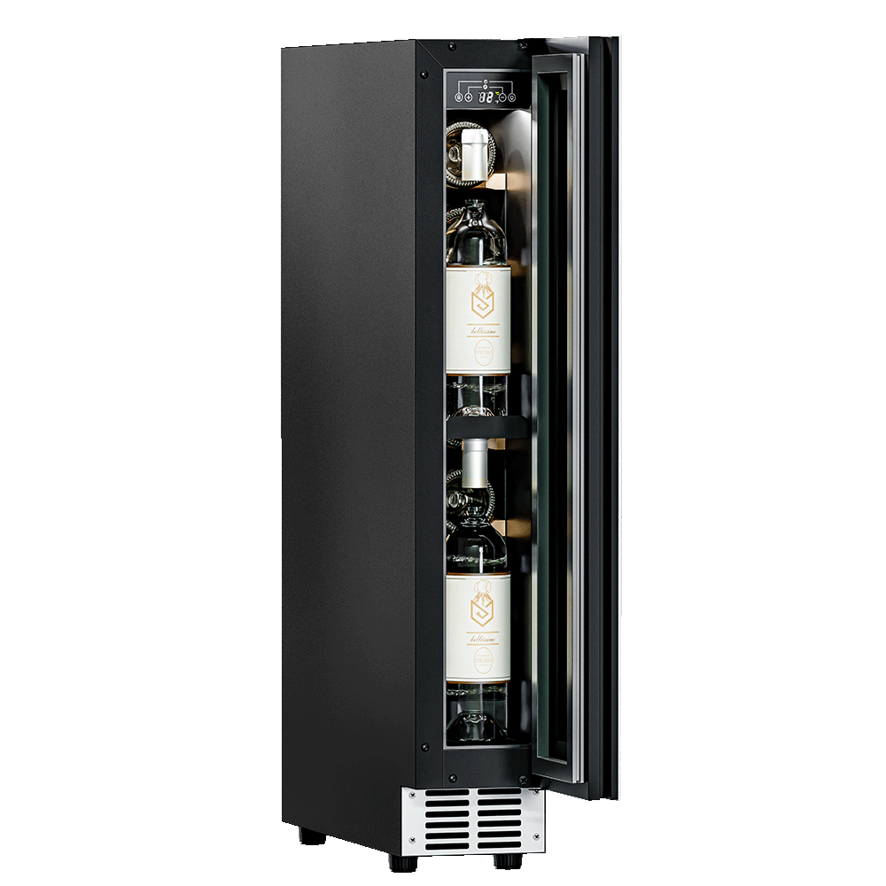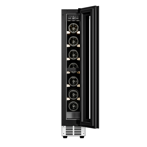 Компрессорный винный шкаф Meyvel MV9NH-KWT1 несмотря на небольшой размер, обладает большой вместимостью и дает возможность разместить до 9 бутылок. Располагаются они на держателях из массива бука. Внутреннее пространство шкафа поддерживает комфортную для вина температуру от +5℃ до +20℃ и имеет самую большую вместимость среди аналогичных винных шкафов. Преимуществом этой модели является возможность разместить внутри одну высокую бутылку. Так же, MV9NH-KWT1 данная модель поддерживает влажность в диапазоне 60-80%, как в настоящем винном погребе.