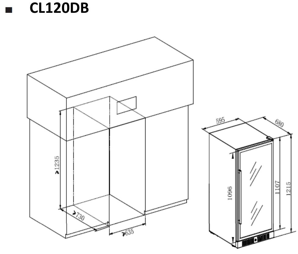 • Размеры ниши (ШхГхВ): 635х730х1235 мм