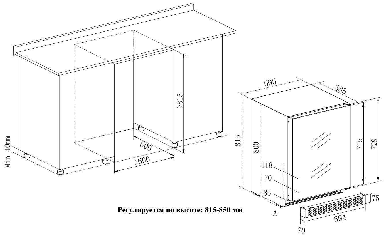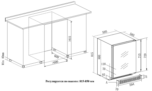 • Размеры ниши (ШхГхВ): 600х600х820 мм