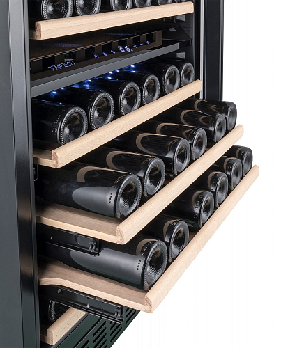Хранение вина при правильной температуре — это не только забота о вашем напитке, но и удобство для вас и ваших гостей. Благодаря наличию двух физически разделенных температурных зон, вы можете индивидуально настроить температуру для хранения игристого, белого и красного вина одновременно.