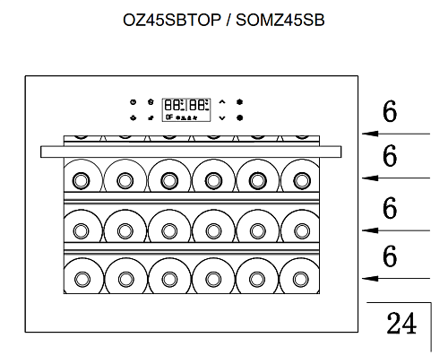 • Революционная вместительность в низкопрофильном корпусе – уникальная конструкция с 3 полками вмещает до 24 стандартных бутылок при высоте менее 45 см. Плотность хранения 0,53 бутылки на литр объема является эталонной для данного класса техники.