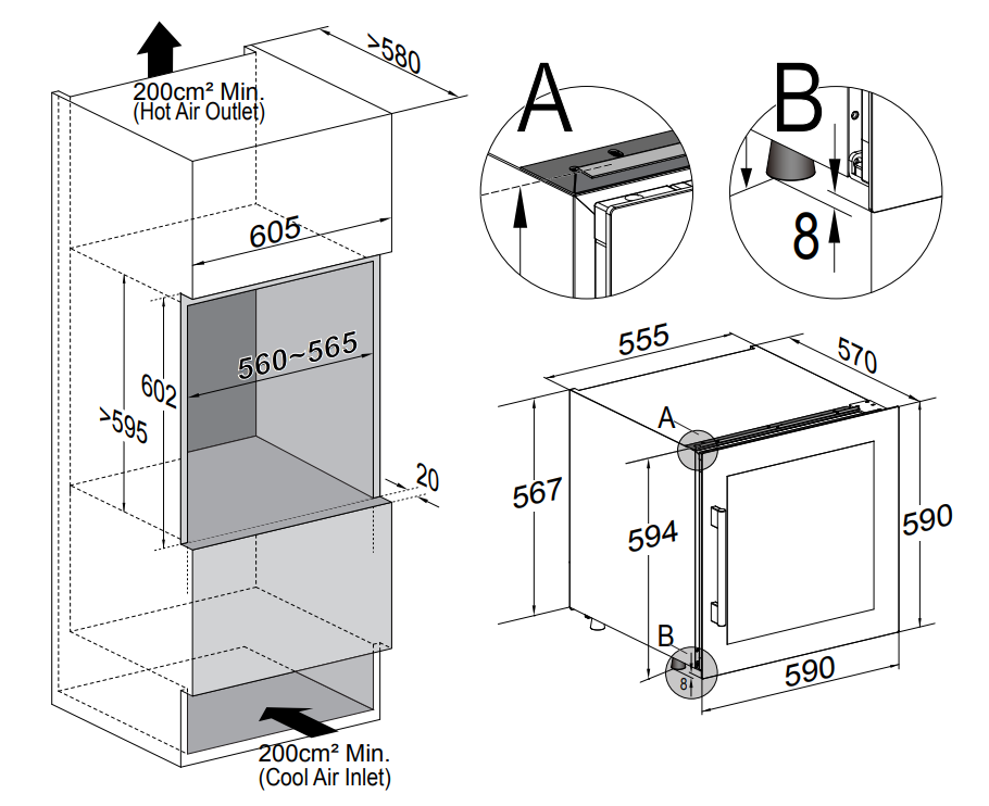 • Тип: встраиваемый винный шкаф (квадратный формат)