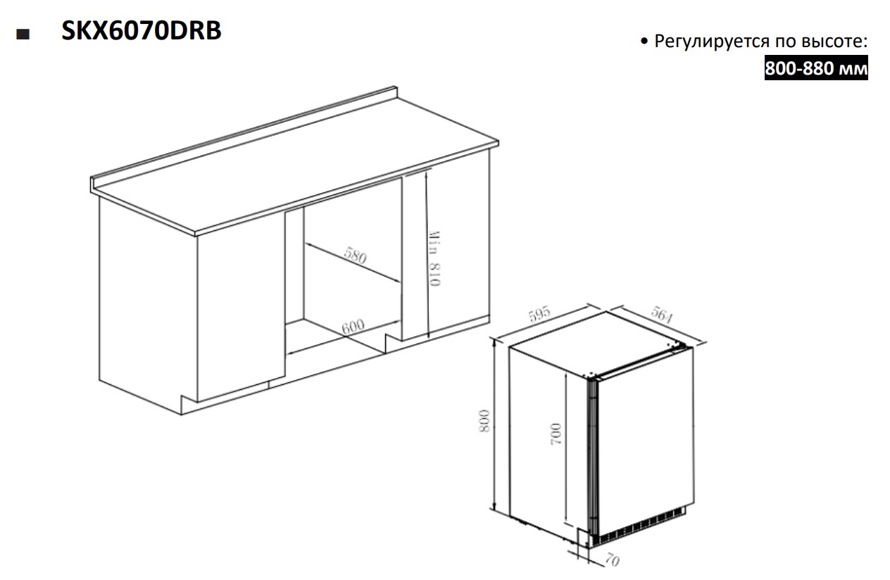 • Размеры ниши (ШхГхВ): 600х580х810 мм