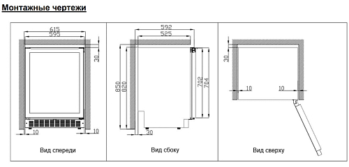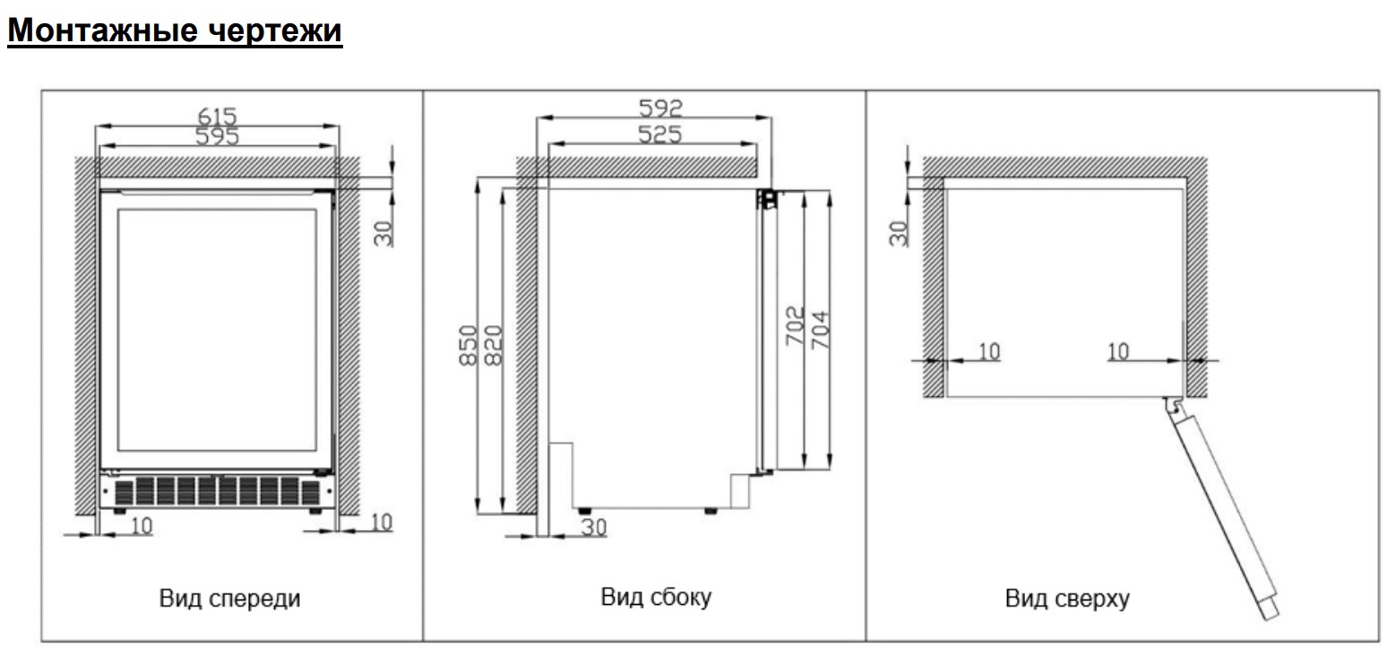 • Размеры ниши (ШхГхВ): 615х600х850 мм